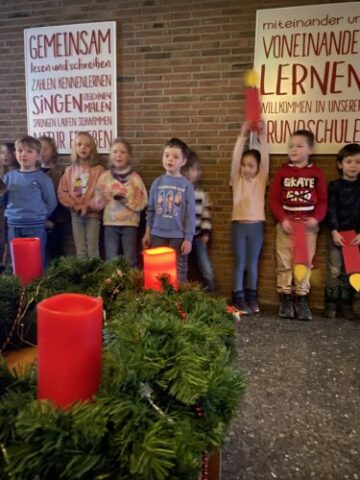 Regelmäßig in der Adventszeit treffen wir uns mit allen Klassen zu Adventsbesinnungen im Foyer, um uns in besinnlicher Atmosphäre auf Weihnachten einzustellen. Zeit zum Innehalten, Nachdenken und gemeinsamen Singen. Jede Woche gestaltet eine andere Klassenstufe die feierliche Adventsbesinnung. Hierbei werden kleine Geschichten, Gedichte oder auch andere Darbietungen vorgeführt – ganz nach dem Motto: Tragt in die Welt ein Licht. Ein Licht, das dort leuchten soll, wo Dunkelheit herrscht.
